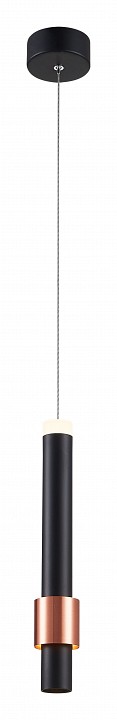 Подвес из металла черного цвета с декоративным акриловым кольцом сверху и медным внизу. Источник света LED 1х6W