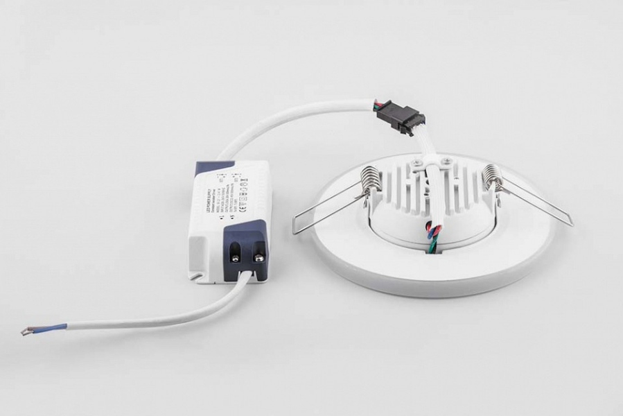 Встраиваемый светильник имеет встроенный светодиодный LED модуль мощностью 9 Вт . Плафоны состоят из таких материалов, как матовый акриловый полимер. Материал арматуры: алюминий.