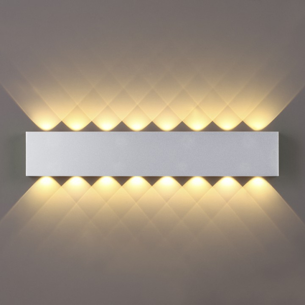 Magnum — линия модных настеных подсветок в матовом золотистом и серебристом цветах с ярко-выраженной геометрией лучей, образованными оптическими линзами. Лучи пересекаясь, образуют еще более интересную игру светотени на поверхности, где свет становится уже графическим объектом. Теперь в ассортименте есть и компактный светильник с одним лучом вверх и вниз.