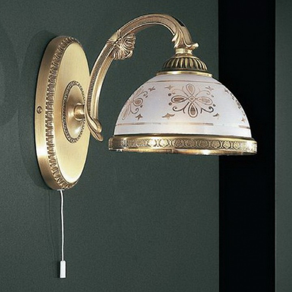 Бра A 6002/1 из коллекции 6002 от итальянской фабрики Reccagni Angelo украсит гостиную, кабинет, спальню в стиле флористика. Материал изделия – латунь, цвет матовая бронза состаренная. Бра имеет 1 плафон из стекла с цоколем E27 общей мощностью 60W. Технические особенности модели: способ крепления светильника на стене – на монтажной пластине, светильник предназначен для использования со скрытой проводкой. Габариты: высота – 18 см, выступ – 25 см.