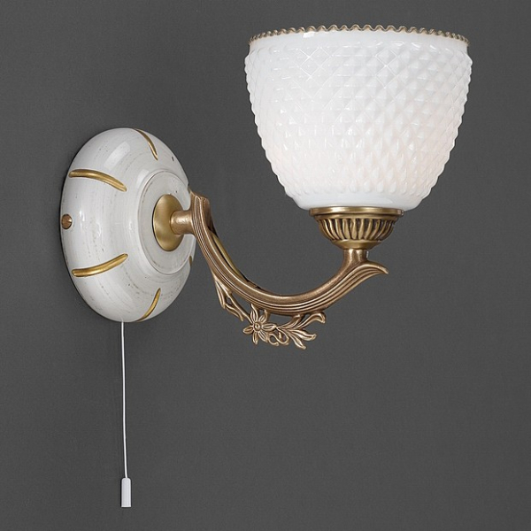 Бра A 8656/1 из коллекции 8656 от итальянской фабрики Reccagni Angelo украсит гостиную, кабинет, спальню в стиле флористика. Материал изделия – дерево, латунь, цвет матовый, рельефный белый, бронза состаренная. Бра имеет 1 плафон из стекла с цоколем E27 общей мощностью 60W. Технические особенности модели: способ крепления светильника на стене – на монтажной пластине, светильник предназначен для использования со скрытой проводкой. Габариты: ширина – 20 см, высота – 20 см, выступ – 26 см.