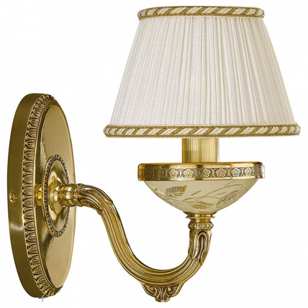 Бра A 6522/1 из коллекции 6522 от итальянской фабрики Reccagni Angelo украсит гостиную, кабинет, спальню в стиле флористика. Материал изделия – латунь, стекло, цвет глянцевый желтый с рисунком, золото французское. Бра имеет 1 плафон из текстиля с цоколем E14 общей мощностью 60W. Технические особенности модели: способ крепления светильника на стене – на монтажной пластине, светильник предназначен для использования со скрытой проводкой. Габариты: ширина – 20 см, высота – 25 см, выступ – 24 см.