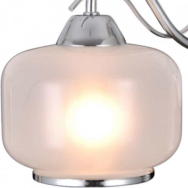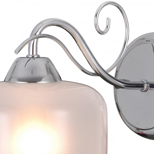 Форма плафона цилиндр круглый, цвет плафона белый с хромированной каймой, цвет арматуры хром. Лампы в комплекте: отсутствуют. Светильник имеет слабую защиту от влаги и пыли — IP20 и предназначен для использования в домашних интерьерах с умеренной влажностью.