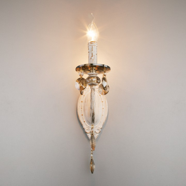 Изделие 10104/1 белый с золотом/тонированный хрусталь Strotskis от российского бренда Eurosvet относится к коллекции Ravenna и отлично подойдет для настенной установки спальни, оформленной в классическом стиле. Бра Eurosvet Ravenna 10104/1 белый с золотом/тонированный хрусталь Strotskis без плафонов осветит помещение площадью 3.3 кв.м. Для устройства рекомендуется использовать лампы накаливания с цоколем E14 и мощностью 60 W. Основными материалами для производства используется хрусталь и металл. Преимущественно представляется в цвете Белый.