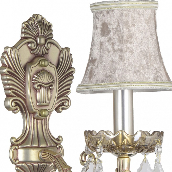 Форма плафона конус, цвет плафона бежевый с каймой, неокрашенный, цвет арматуры золото черненое. Лампы в комплекте: отсутствуют. Светильник имеет слабую защиту от влаги и пыли — IP20 и предназначен для использования в домашних интерьерах с умеренной влажностью.