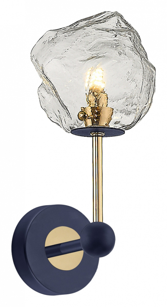 Бра из металла окрашенного в матовый синий цвет с золотыми элементами и плафонами в виде прозрачных глыб льда. H310mm x L135mm x W180mm, 1хG9