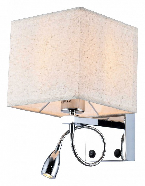 Форма плафона призма квадратная, цвет плафона бежевый, цвет арматуры хром. Лампы в комплекте: отсутствуют. Светильник имеет слабую защиту от влаги и пыли — IP20 и предназначен для использования в домашних интерьерах с умеренной влажностью.