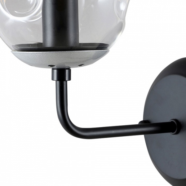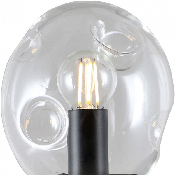 Форма плафона сфера, цвет плафона неокрашенный, цвет арматуры черный. Лампы в комплекте: отсутствуют. Светильник имеет слабую защиту от влаги и пыли — IP20 и предназначен для использования в домашних интерьерах с умеренной влажностью.