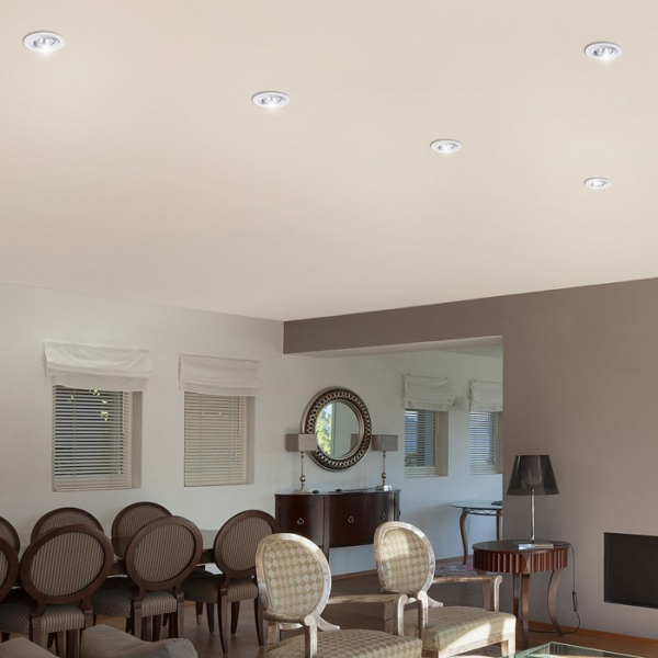 Встраиваемый неповоротный светильник. Может освещать всё помещение или отдельные зоны; не бросается в глаза, а создаёт «атмосферу»; встраиваемый вариант исключительно эргономичен (важно для низких потолков); имеет небольшой вес.