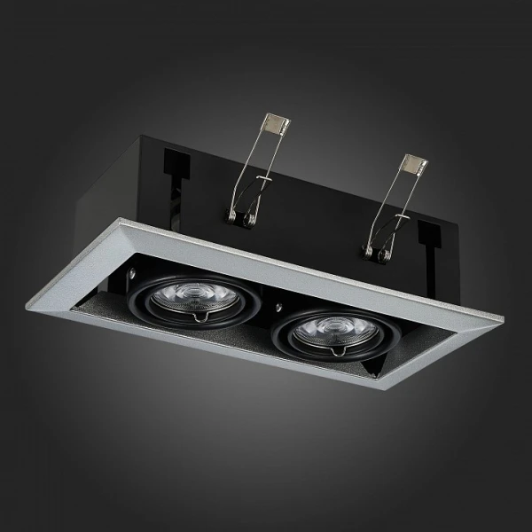 Встраиваемый светильник ST250.148.02 из коллекции Hemi итальянского бренда ST-Luce для установки в гостиную, кабинет, коридор, прихожую или спальню. Основание светильника серое, черное матовое из металла. Модель оснащена лампами с цоколем 2xGU10, общей мощностью 100W. Крепление к потолку на прижимных скобах. Габариты светильника: глубина – 70 мм, длина – 245 мм, ширина – 126 мм. Размер врезного отверстия – 225x103 мм.