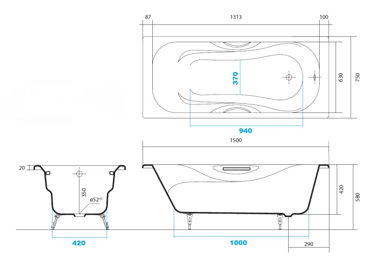 Чугунная ванна Aquatek Гамма 150x75 AQ8050FH-00