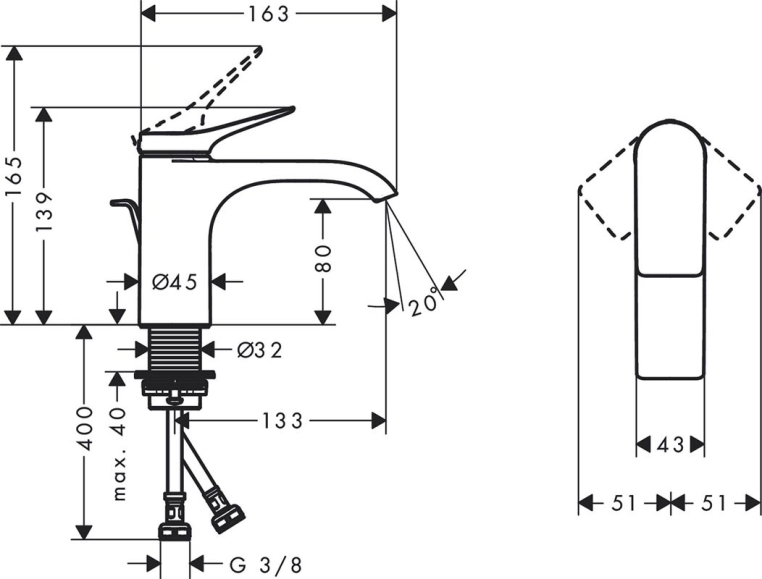 состоит из: однорычажный смеситель для раковины, слив/перелив