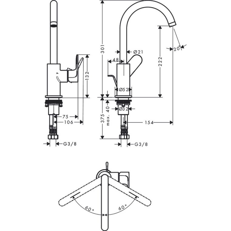 угол поворота излива: 120°