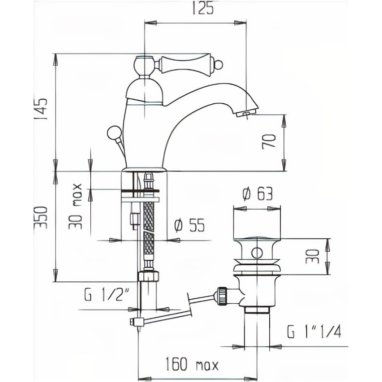 Высота излива, мм
