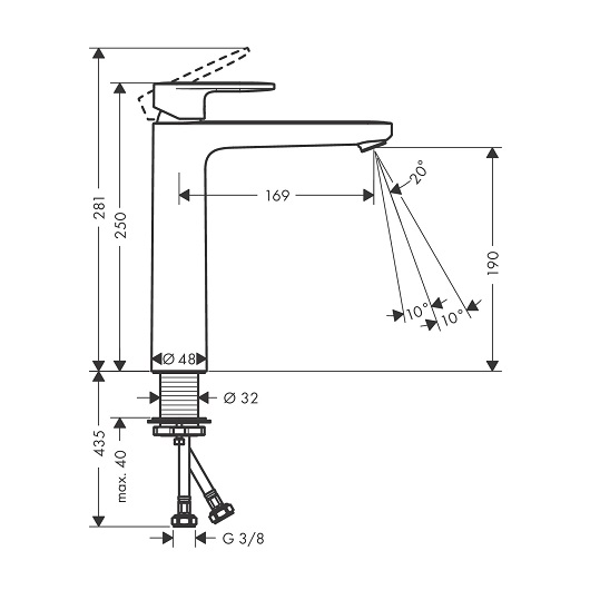 • Высота излива, мм 190