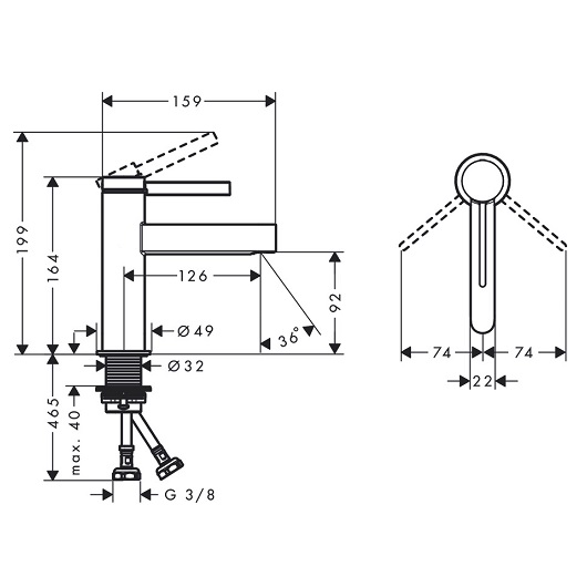 Высота излива, мм