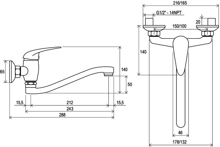 - межосевой размер смесителя : 100 мм - подходит для реконструируемых квартир