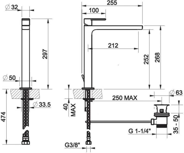 Высота излива, мм