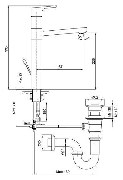 Максимальный расход воды при давлении 3 бар составляет 7,4 л/мин.