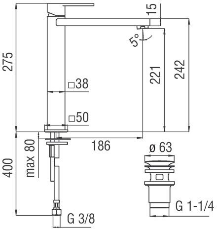 Высокий смеситель для раковины Nobili Loop LP90128/2CR
