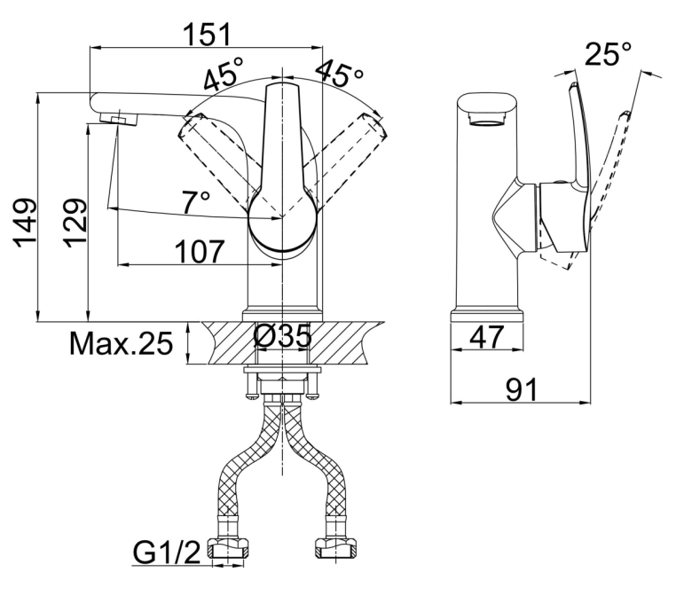 - Гибкая подводка 40 см идёт в комплекте для быстрой установки.