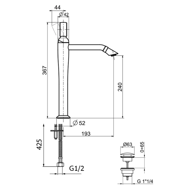 Высота излива, мм