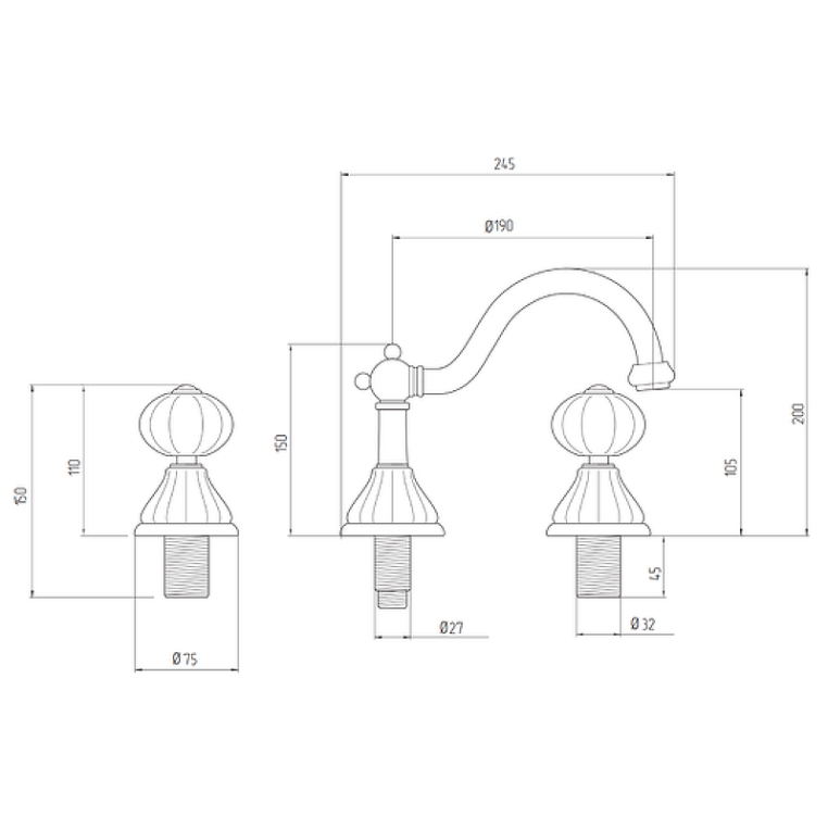 Смеситель для раковины донный клапан "click-clack" Migliore Olivia 19031 на 3 отверстия излив змейка белый с золотым декором/золото