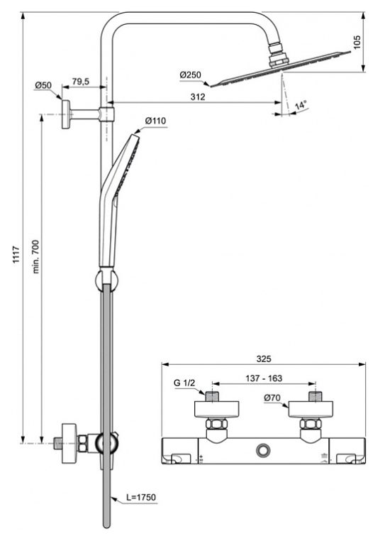 Душевая стойка Ideal Standard Ceratherm T50 A7565AA с термостатическим смесителем для душа
