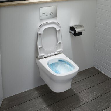 Унитаз Vox от французского производителя Jacob Delafon – лаконичная модель для создания интерьера санузла класса люкс. Он изготовлен из фарфора с гладким глазурованным покрытием, на котором не размножаются бактерии и болезнетворные микроорганизмы. Прямоугольная чаша со скругленными углами не имеет ободка, поэтому вся ее поверхность доступна для очистки. Смывающий поток направлен в заднюю часть, что гарантирует эффективное устранение загрязнений. Система «антивсплеск» обеспечивает комфортное пользование и повышает гигиеничность. Комплектуется удобным сиденьем с крышкой из термодюра, оснащенным механизмами плавного опускания и быстрого снятия.