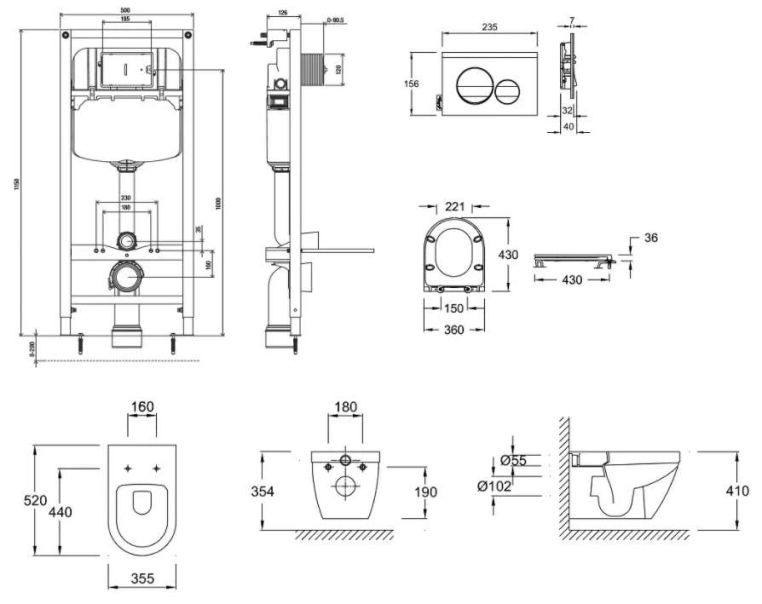 Унитаз c инсталляцией, сиденье, клавиша черная Jacob Delafon Rodin+ E21748RU-00 комплект