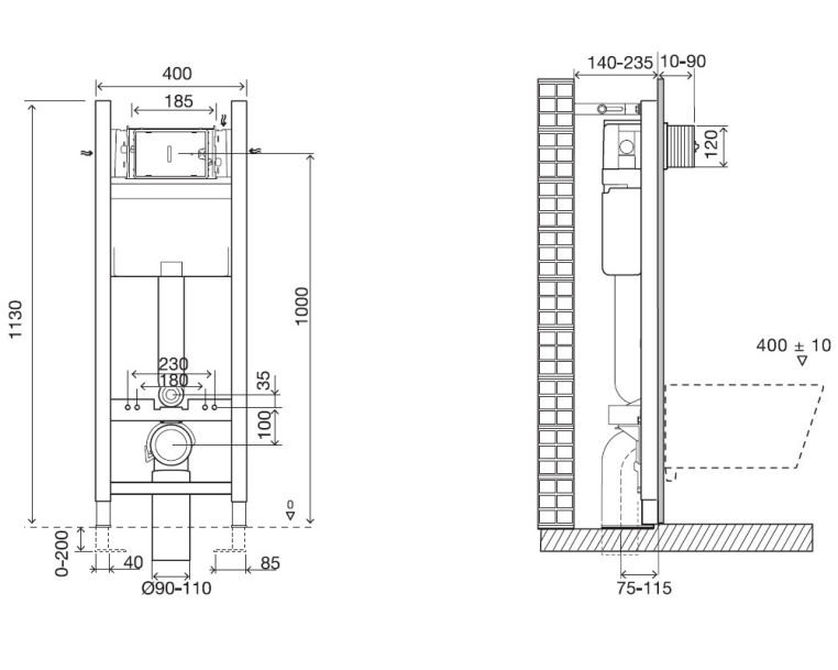 • Регулировка фановой трубы по глубине : Прочный полипропилен с