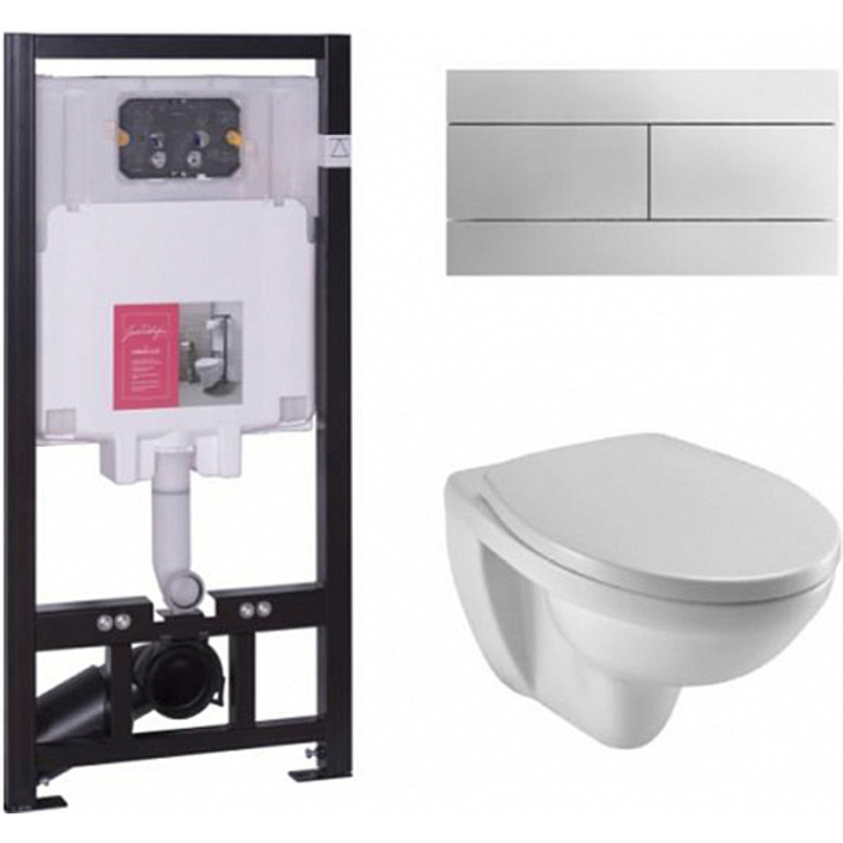 Подвесной унитаз Jacob Delafon Patio E21734RU-00 с крышкой-сиденьем Soft Close в комплекте с инсталляцией и клавишей смыва цвета хром.