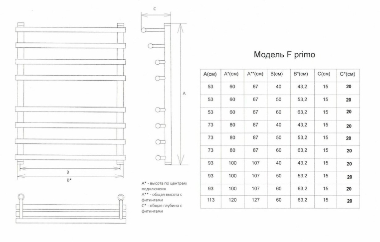 Полотенцесушитель водяной Двин F primo 53x100 4627087857844 бронза