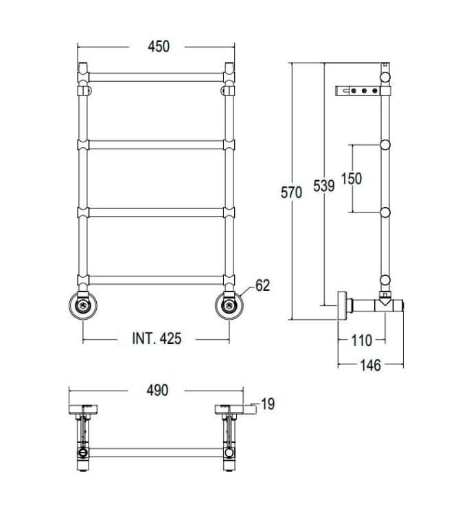 Полотенцесушители выполнены из латунных труб соответствующей формы, которые собираются, свариваются и тестируются посредством гидропневматических систем.