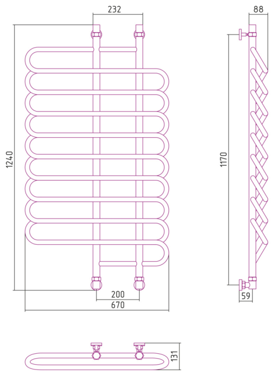 Водяные полотенцесушители (дизайн-радиаторы) серии «Шарм» предназначены для работы в системах центрального отопления и горячего водоснабжения. По своему типу являются «лесенкой» с зигзагообразной перемычкой. По форме и компоновке похожи на комбинацию двух типов – «Фурор» и «Элегия», но, в общем, сильно отличаются от всех остальных моделей. Перемычки в виде S-образного змеевика (1/2”) и в виде прописанной «восьмёркой» орбиты позволяют с удобством располагать на ней различные предметы одежды, головные уборы, обувь. Изготавливаются шириной 700 мм и высотой от 800 мм до 1200 мм. В стоимость входит полная максимальная комплектация.
