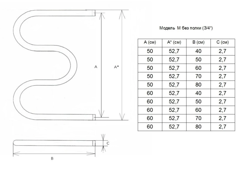 Полотенцесушитель водяной Двин M 3/4" 60x52 4627085939221 хром