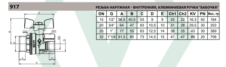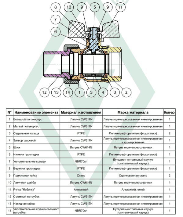- Материал шара и штока: латунь