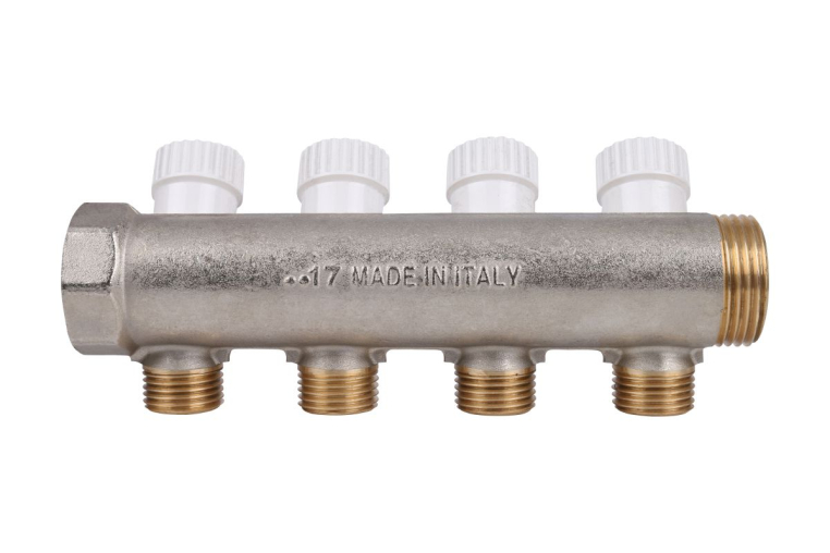Stout Распределительный проходной коллектор ВР-НР 1" c 4 отводами 1/2" плоское уплотнение (SMB 6852 011204)
