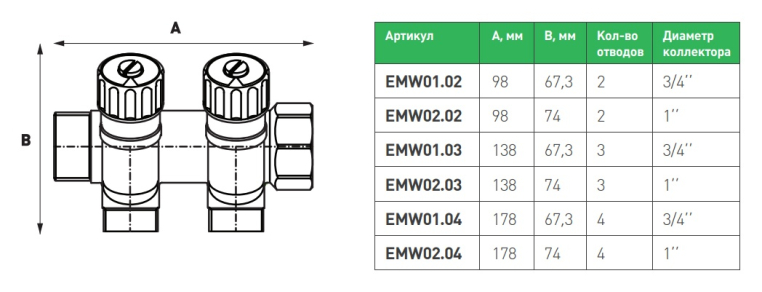 Коллектор модульный Elsen 1 2 выхода 3/4", с вентилями (EMW02.02)