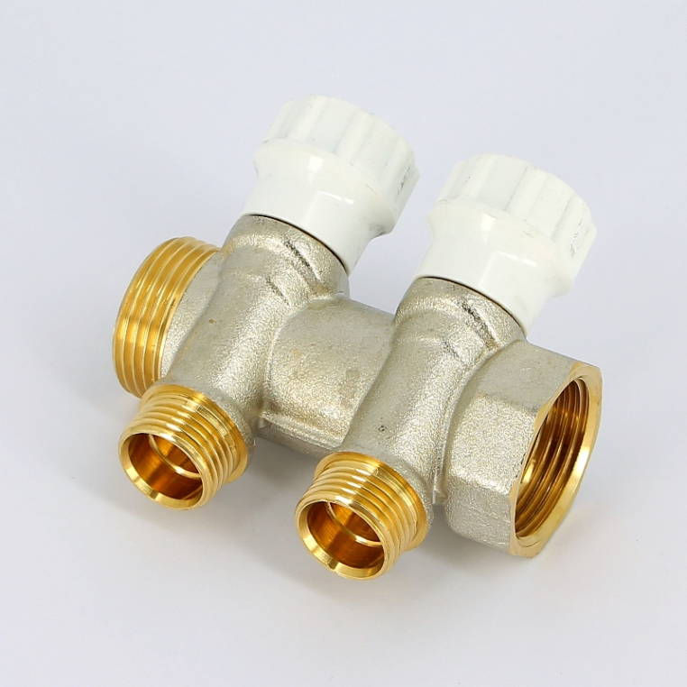 Коллектор оснащен пластиковыми вентилями, которые позволяют регулировать напор воды для каждой точки разводки. Рекомендованный момент затяжки – 40 Нм, максимальный момент затяжки – 60 Нм. Максимальная рабочая температура коллектора +110 оС. Для присоединения к трубопроводу используется наружная / внутренняя резьба HB G 1". Для присоединения контуров отопления применяются отводы с наружной резьбой H диметром G 1/2" х 16 мм с конической посадкой. Резьба: ISO228 (эквивалентно DIN EN ISO 228 и BS EN ISO 228)