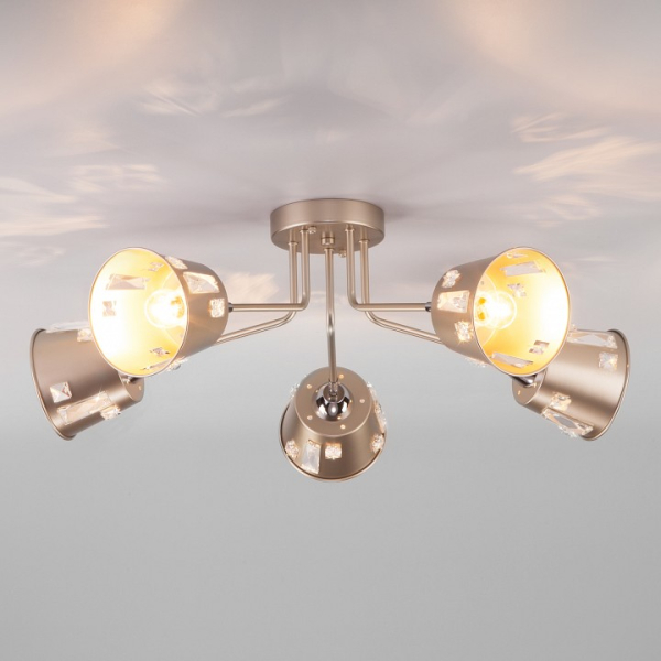 Изделие 70105/5 шампань от российского бренда Eurosvet относится к коллекции Benna и отлично подойдет для установки на низкий потолок в гостиной, оформленной в стиле модерн. Потолочная люстра Eurosvet Benna 70105/5 шампань с плафонами-конусами осветит помещение площадью 20 кв.м. Для устройства рекомендуется использовать лампы накаливания с цоколем E27 и мощностью 60 W. Основным материалом для производства используется металл и может использоваться для натяжного потолка. Преимущественно представляется в цвете Шампань.