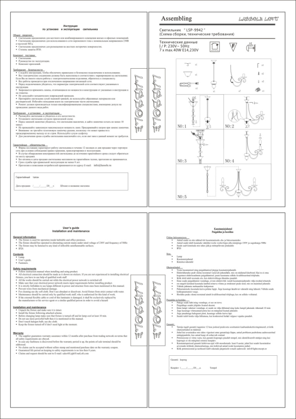 Непревзойденная модель LSP-9942 от итальянской компании Lussole относится к коллекции LSP-9941 и отлично подойдет для установки на потолок в гостиной, оформленной в стиле модерн. Подвесная люстра Lussole LSP-9942 без плафонов осветит помещение площадью 15.6 кв. м. Производитель Lussole рекомендует использовать для устройства лампы накаливания с цоколем E14 и мощностью 40 W. Прибор произведен с использованием материала: металл и может использоваться для натяжного потолка. Основным цветом товара является Бронзовый. Подвесная люстра LSP-9942 .