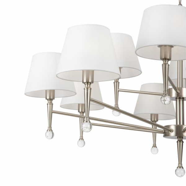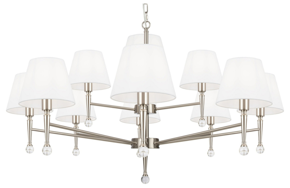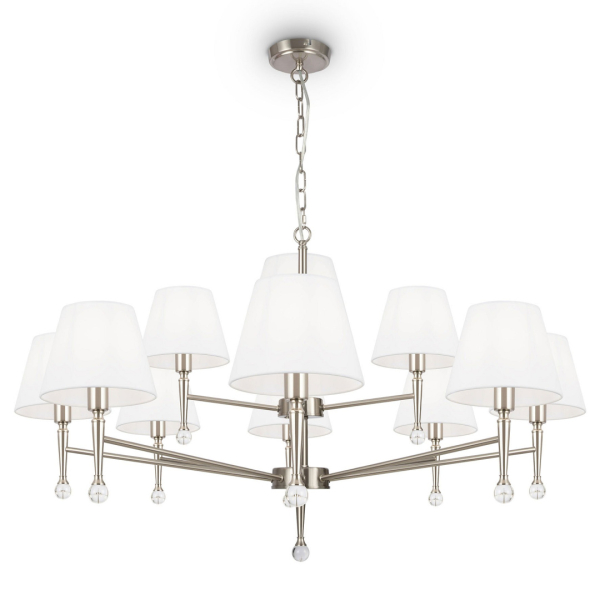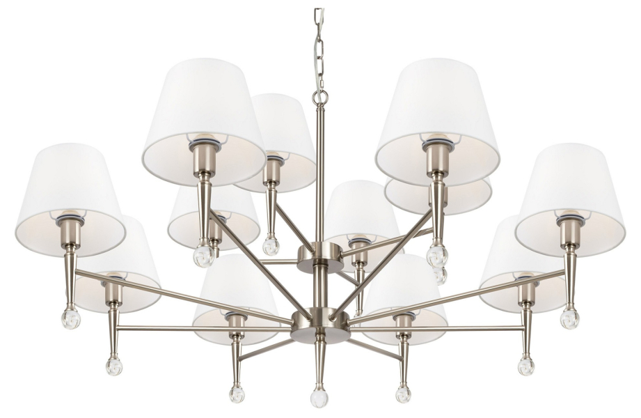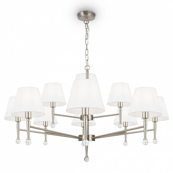 Изделие FR2190PL-12N от немецкого бренда Freya относится к коллекции Rosemary и отлично подойдет для установки на потолок в гостиной, оформленной в классическом стиле. Подвесная люстра Freya Rosemary FR2190PL-12N с трапециевидными плафонами осветит помещение площадью 32 кв.м. Для устройства рекомендуется использовать лампы накаливания с цоколем E14 и мощностью 40 W. Основными материалами для производства используется текстиль, металл и ткань и может использоваться для натяжного потолка. Преимущественно представляется в цвете Белый и Никелевый.