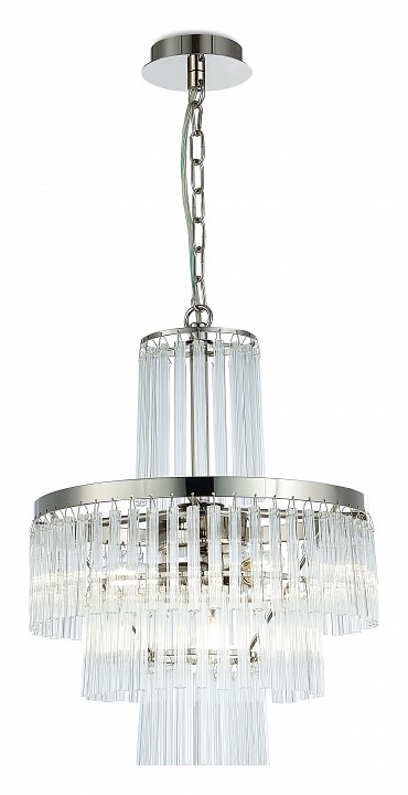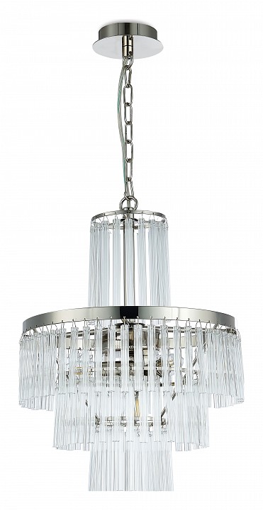 Люстра из тонкого металла цвета глянцевый никель и стеклянных трубочек зафиксированных только сверху. D360mm, H440-1390-1330mm, 4хЕ14