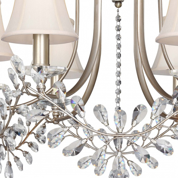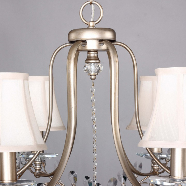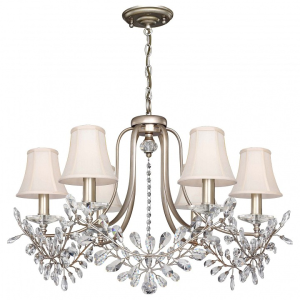 Изделие 2171-6P от немецкого бренда Favourite относится к коллекции Glory и отлично подойдет для установки на потолок спальни, оформленной в стиле прованс. Подвесная люстра Favourite Glory 2171-6P с плафонами-конусами осветит помещение площадью 13.3 кв. м. Для устройства рекомендуется использовать лампы накаливания с цоколем E14 и мощностью 40 W. Основными материалами для производства используется текстиль, металл и ткань и может использоваться для натяжного потолка. Преимущественно представляется в цвете Кремовый и Серебряный.