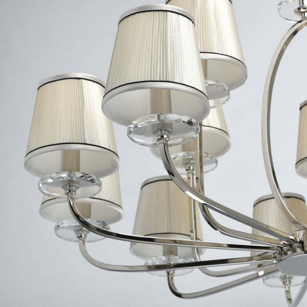 Изделие 355013415 от немецкого бренда MW-Light относится к коллекции София и отлично подойдет для установки на потолок больших залов, оформленных в стиле арт-деко. Подвесная люстра MW-Light София 355013415 с плафонами-конусами осветит помещение площадью 33.3 кв. м. Для устройства рекомендуется использовать лампы накаливания с цоколем E14 и мощностью 40 W. Основными материалами для производства используется текстиль, металл и ткань и может использоваться для натяжного потолка. Преимущественно представляется в цвете Бежевый и Никелевый.