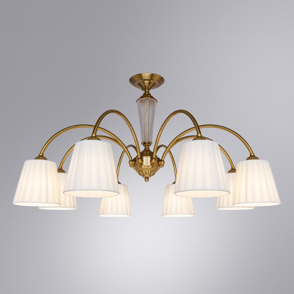 Изделие A7301PL-8PB от итальянского бренда Arte Lamp относится к коллекции Gracie и отлично подойдет для установки на потолок в гостиной, оформленной в классическом стиле. Потолочная люстра Arte Lamp Gracie A7301PL-8PB с плафонами-конусами осветит помещение площадью 18 кв.м. Для устройства рекомендуется использовать лампы накаливания с цоколем E14 и мощностью 40 W. Основными материалами для производства используется текстиль, металл и ткань и может использоваться для натяжного потолка. Преимущественно представляется в цвете Белый и Медный.