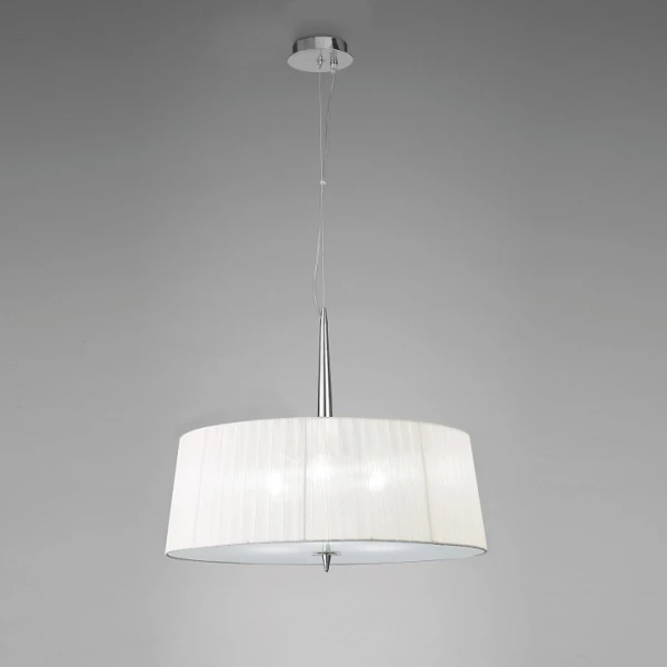 Изделие 4639 от испанского бренда Mantra относится к коллекции Loewe и отлично подойдет для установки на потолок спальни, оформленной в дизайнерском стиле. Подвесной светильник Mantra Loewe 4639 с плафонами-конусами осветит помещение площадью 12 кв.м. Для устройства рекомендуется использовать энергосберегающие лампы с цоколем E14 и мощностью 20 W. Основными материалами для производства используется текстиль, металл и органза и может использоваться для натяжного потолка. Преимущественно представляется в цвете Белый и Серебристо-стальной.