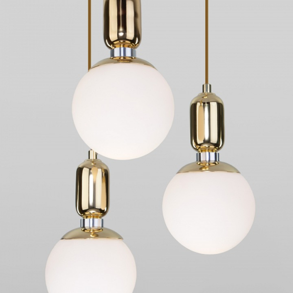 Изделие 50151/3 золото от российского бренда Eurosvet относится к коллекции 50151 и отлично подойдет для установки на потолок в гостиной, оформленной в современном стиле. Подвесной светильник Eurosvet 50151/3 золото с плафонами в виде шаров осветит помещение площадью 6 кв.м. Для устройства рекомендуется использовать лампы накаливания с цоколем E27 и мощностью 60 W. Основными материалами для производства используется стекло и металл и может использоваться для натяжного потолка. Преимущественно представляется в цвете Золотой и Кремовый.