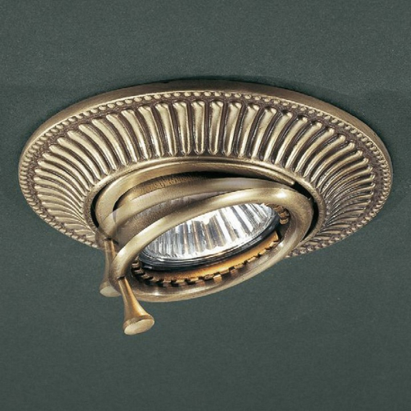 Встраиваемый светильник SPOT 1082 BRONZO из коллекции 1082 итальянского бренда Reccagni Angelo для установки в гостиную, кабинет, коридор, прихожую или спальню. Основание светильника бронзовое состаренное матовое из латуни. Модель оснащена лампой с цоколем GU10, максимальной мощностью 35W. Габариты светильника: глубина – 30 мм, диаметр – 120 мм, выступ – 20 мм, высота – 50 мм.